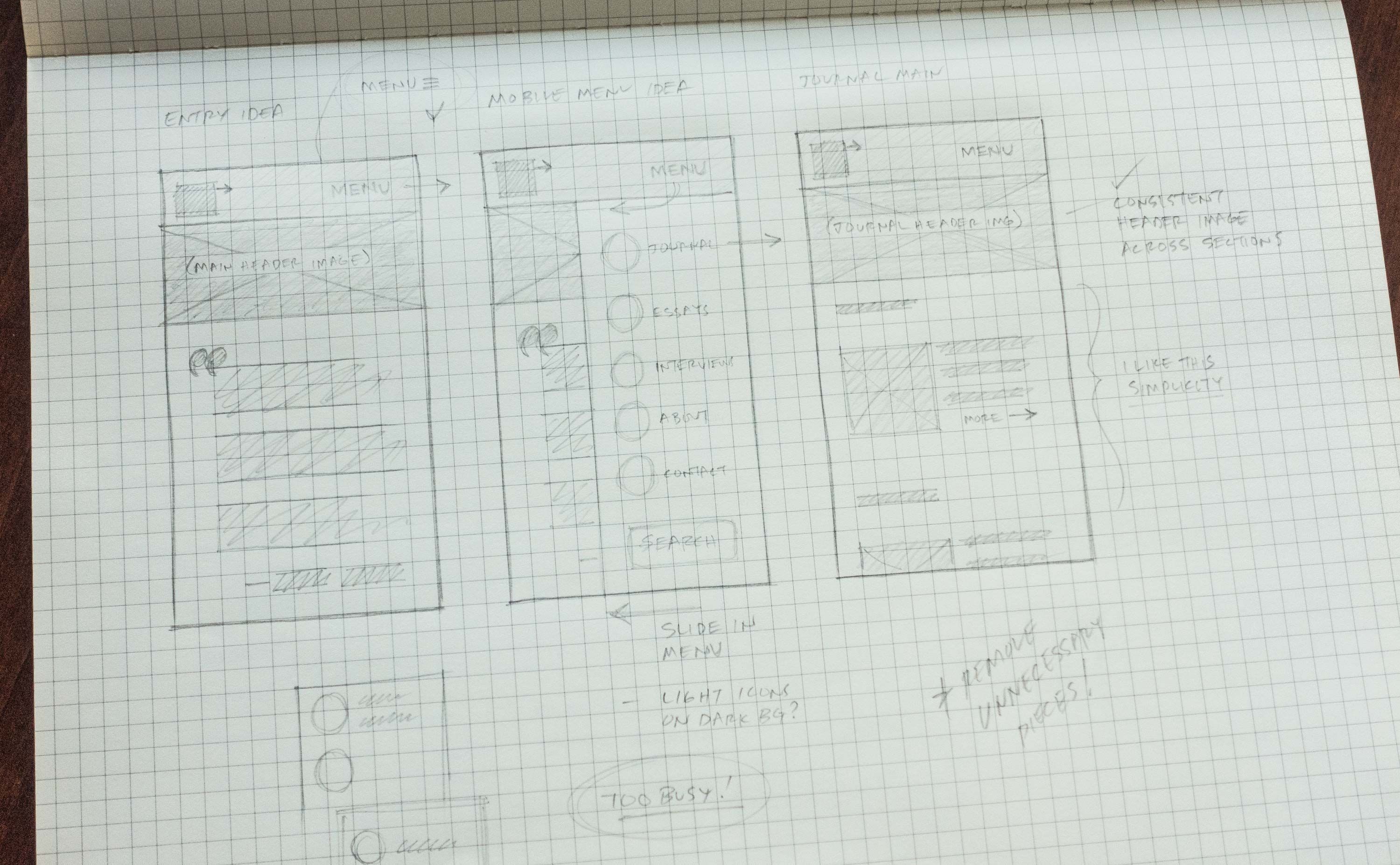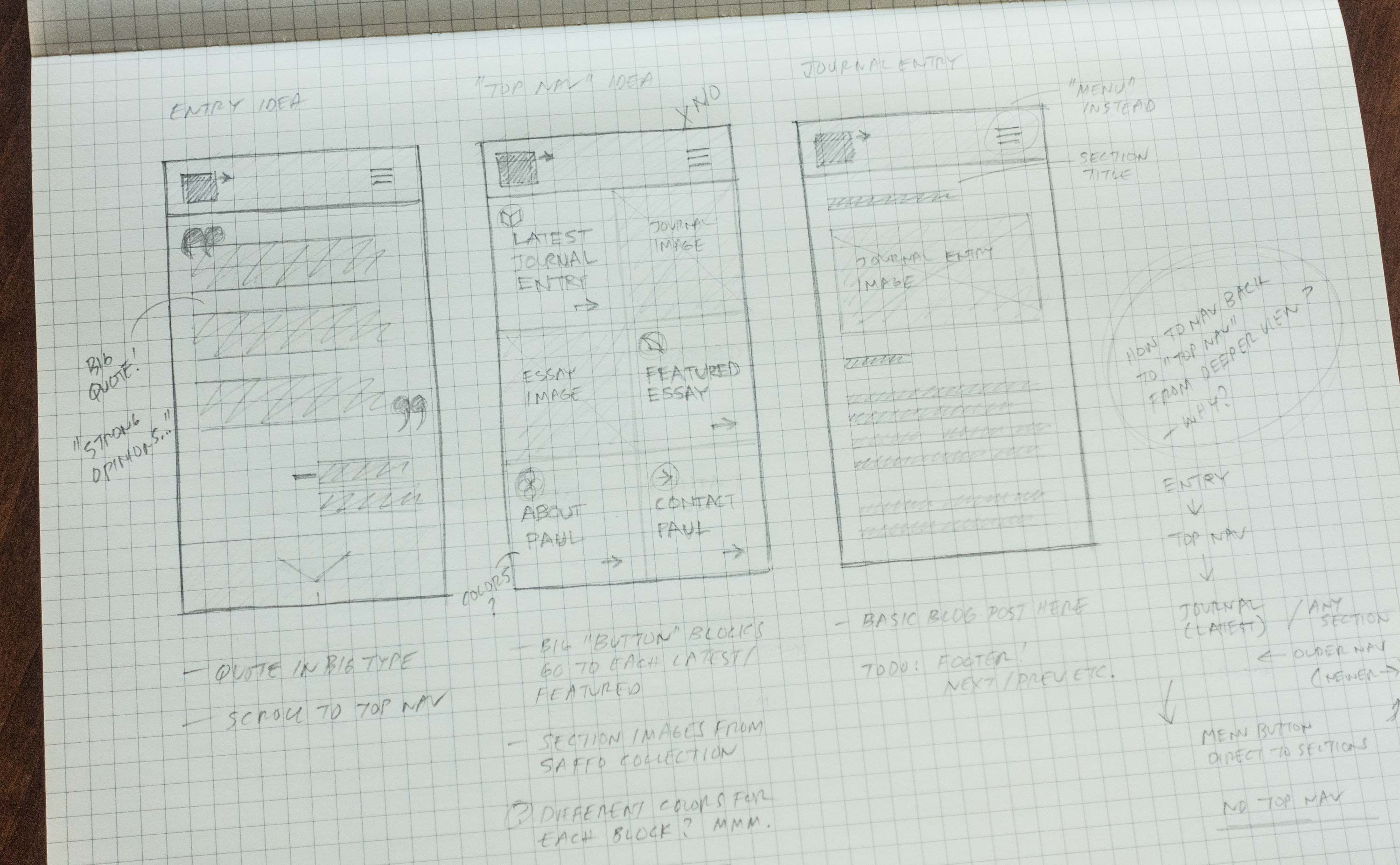 The icons serve functionally in the site navigation component, but also serve as a bridge to Paul’s brand identity—in the final desktop site I feature them prominently.