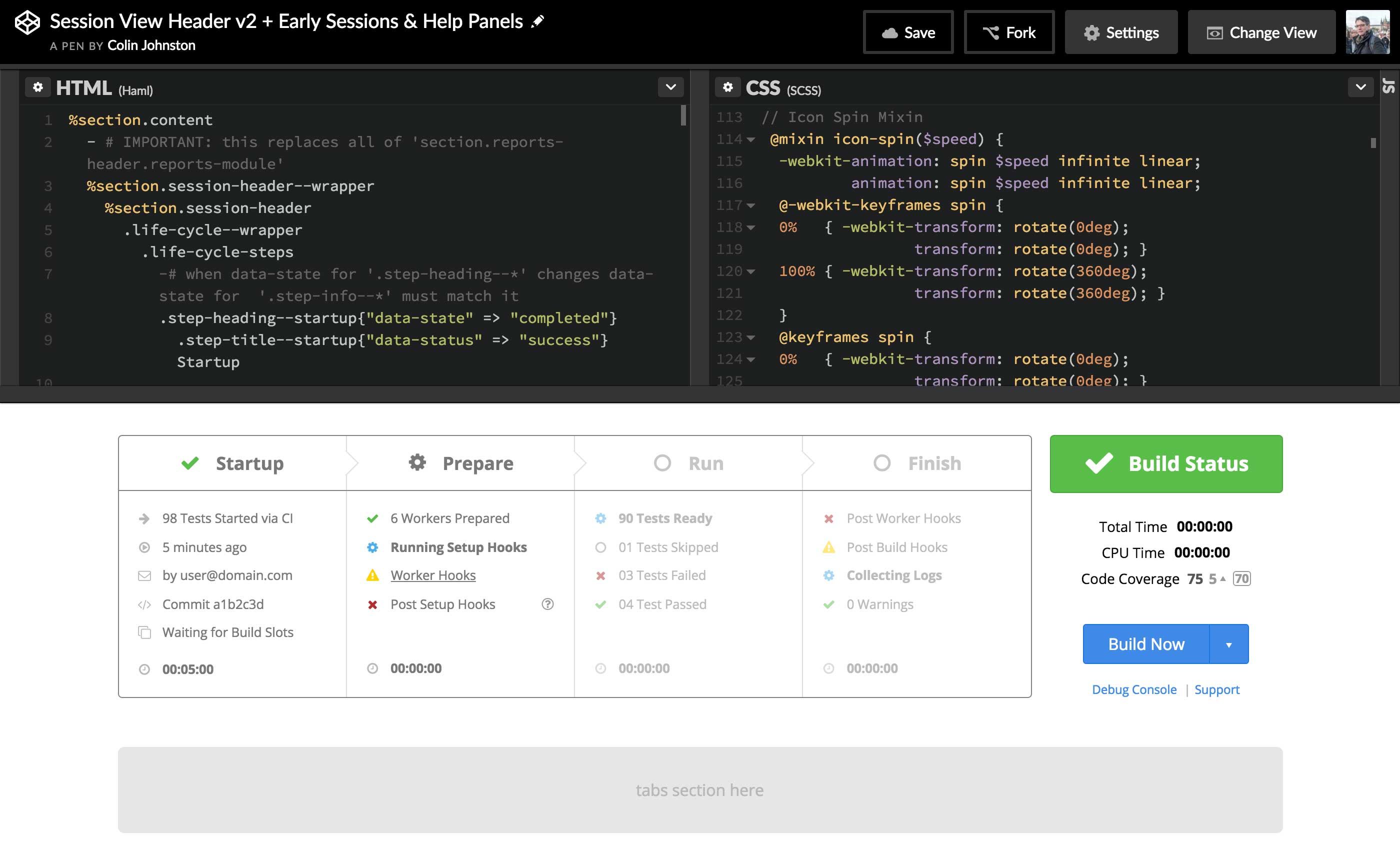 The Session View—the core of Solano CI—is a comprehensive real-time report of build progress and test results for a single software project. Since its initial release incremental changes to the system cause increasing usability and technical issues, the most critical being diminished trust in reporting accuracy.