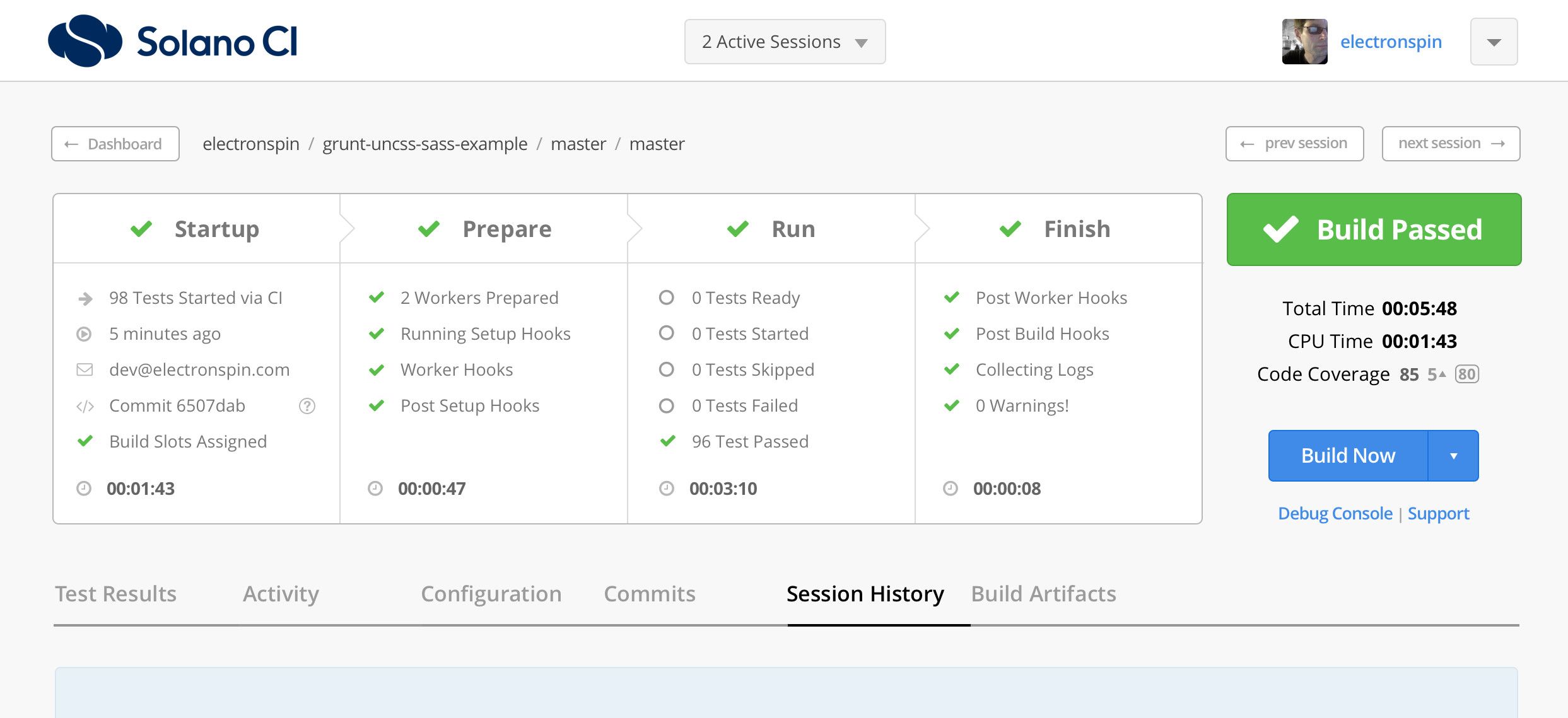 The new Session View increases the value and accuracy of the status report with a simplified, intuitive interface and a clear, precise data visualization. We increased user confidence in the system and overall trust in Solano CI.